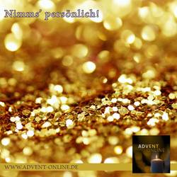 Advent! Heiligabend immer näher am terminlichen Horizont. Videokonferenz. Unverschiebbar „Noch vor Weihnachten!“ Auf dem Bildschirm die anderen Teilnehmenden. Wie so oft im letzten Jahr. Ich schaue genauer hin. Die eine Kachel hat sich dazwischengemogelt. Golden.